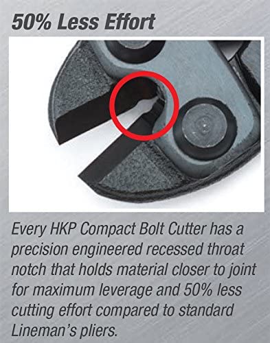 - Precision engineered recessed throat notch that holds material closer to the joint for maximum leverage and 50% less cutting effort compared to standard lineman’s pliers.