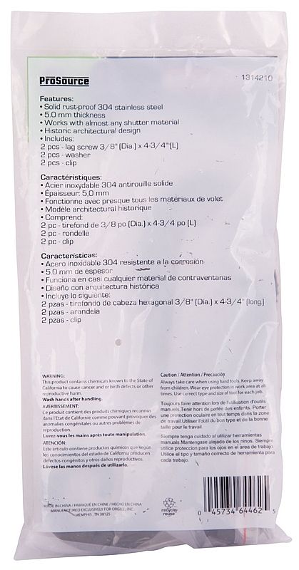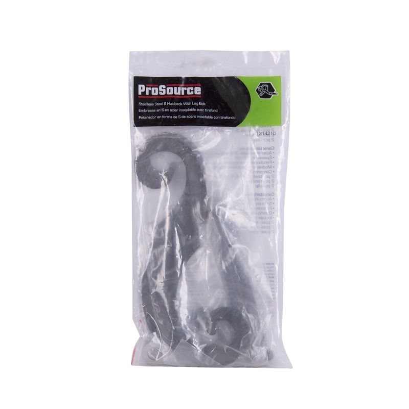 Stainless steel material. 5.0mm thickness. Includes two holdbacks, two 3/8 in D x 4-3/4 in L lag screws with holes, two washers, and two cotter pins for installation.