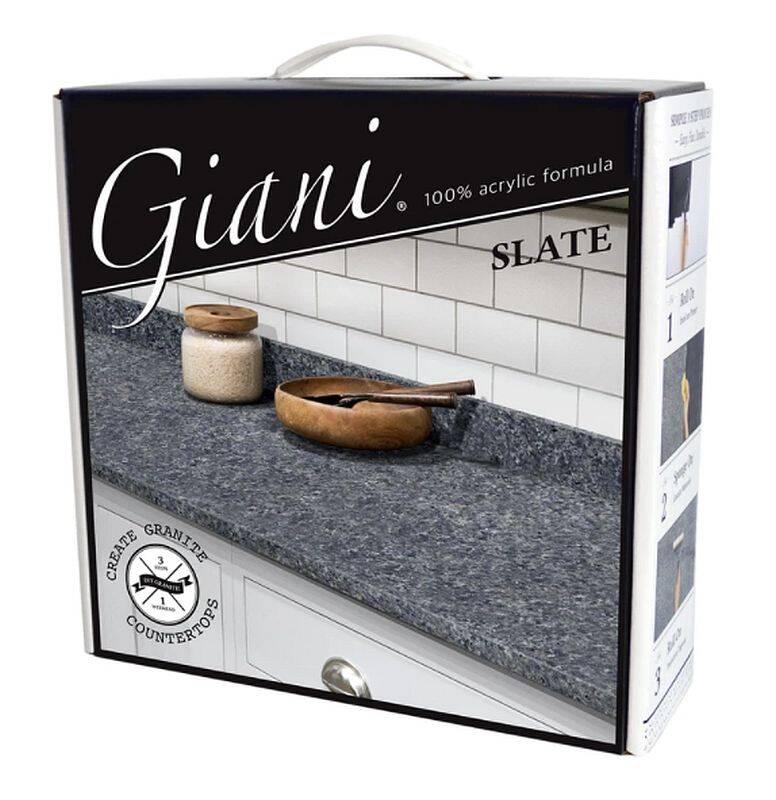 Giani Slate delivers the same look of the classic kit in a 100% Acrylic formula. Still water-based, ultra-low VOC, and easy to use, Giani Slate is ultra-safe, ultra-durable, and still transforms your countertops in a single weekend!