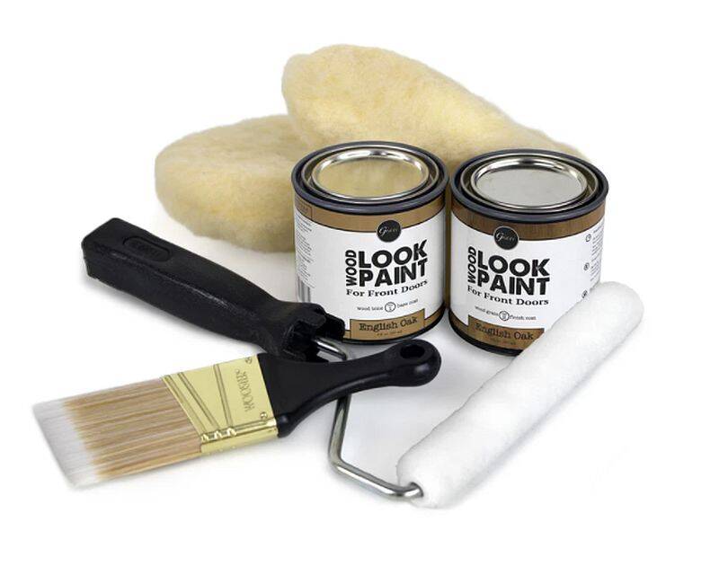 Giani Wood Look Paint for Front Doors is a simple, three-step application that will transform smooth, embossed, flat or raised panel doors in just four hours. Each kit contains all necessary tools and covers 45 square feet of surface, which includes one side of the door and sidelights.