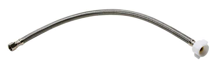 High Bursting strength, each foot of No-Burst contains 250 ft of stainless steel wire. Stainless ferrules are extra-long with added crimps for added security. Non toxic polymer core resists chlorine and chloramines. Captive cone washers seal tightly. Exceptionally flexible for fast easy installation. Won't kink or crease in the tightest of spaces. Easy to grip, nickel plated brass hex nuts. Meets agency standards: IAPMO Standard, SBCCI, CSA, NSF-61-9, A112.18.6 AND UPC.