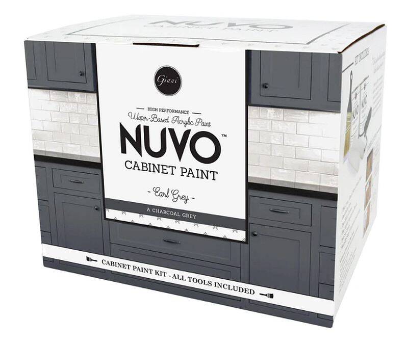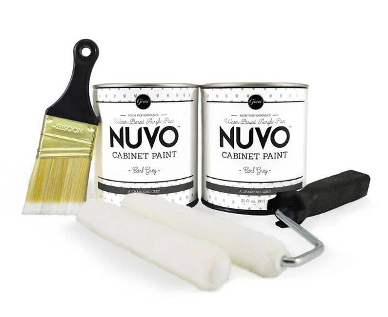Nuvo Cabinet Paint is water-based, safe, low-odor and low in VOC. The specialized paint and primer in one system covers most existing finishes with minimal prep, and without the need to dismantle your cabinets. Nuvos durable design is water resistant and withstands the wear and tear of everyday use without additional topcoats or sealers.