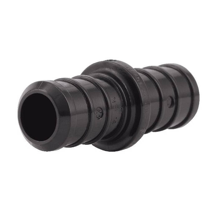 Connect 2-pieces of same sized PEX pipe together using crimp or clamp rings. Corrosion-resistant fitting certified for use in potable water and hydronic heating system applications.
