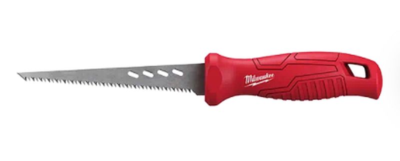 Our Rasping Jab Saw is the only jab saw on the market to integrate rasping holes along the side of the blade to rapidly expand holes or smooth rough edges of sheetrock after a cut has been made. Complete with ribbed indentions to increase handle grip, the new jab saw also features a thick 6-inch plaster/drywall blade for increased durability and life. The piercing tip makes this tool is ideal for penetrating drywall, and the blade allows you to cut plaster with ease. With a tether-ready lanyard hole and anti-roll handle, the MILWAUKEE® Rasping Jab Saw is perfect for contractors and builders.