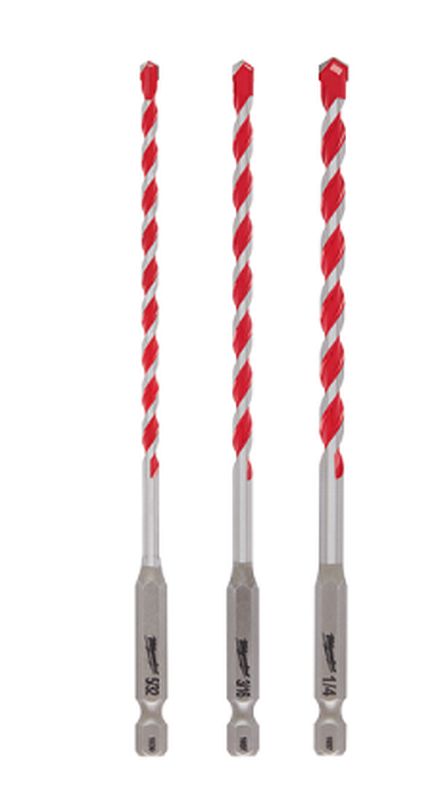 Our SHOCKWAVE™ carbide hammer drill bits use sharpened carbide to deliver up to 5x longer life in concrete and up to 2x faster drilling into masonry material. Engineered with a precision ground tip, these bits deliver faster starts and less walking in concrete, brick and block. Wide flute design removes dust faster, reducing heat and delivering more holes per charge. Equipped with a 1/4 in hex shank, MILWAUKEE® SHOCKWAVE™ carbide hammer drill bits are the ideal solution for drilling in masonry materials with both impacts and hammer drills/drivers.