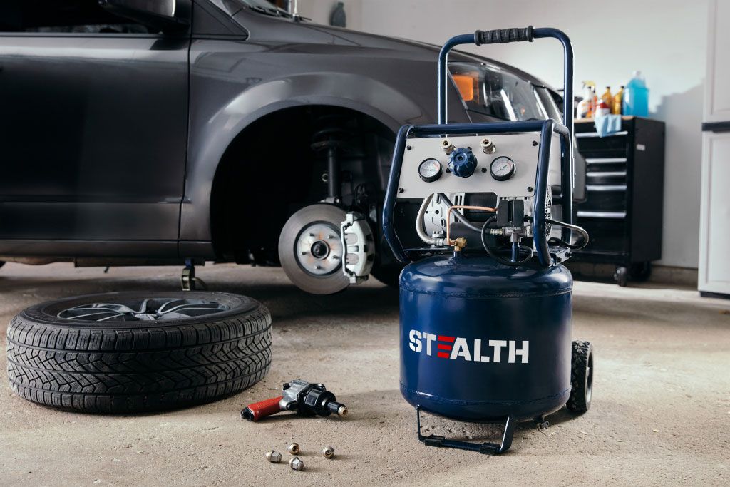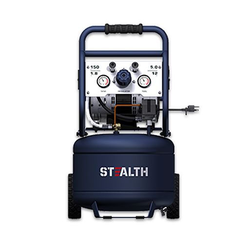 When youre looking for the best shop air compressor, power and portability are important. Look no further than the Stealth 12 Gal Professional compressor. Its 6 ft cord, vertical tank, heavy duty tires, and rubber grip handle make it easy to wheel from project to project. Whether youre using to refill air in tires, for impact drills or wrenches, or grease gun, our 12v, 1.5 HP air compressor gives you maximum capability. And Stealths Innovative Quiet Systems means less noise than competing compressors.