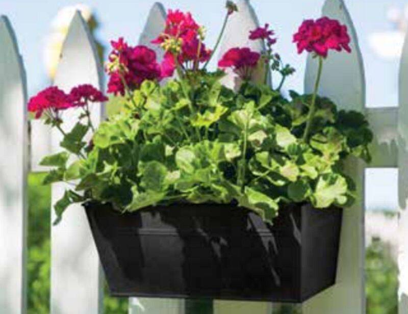 16-Inch Matte Black Over-The-Rail Metal Planter