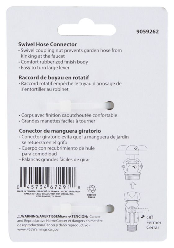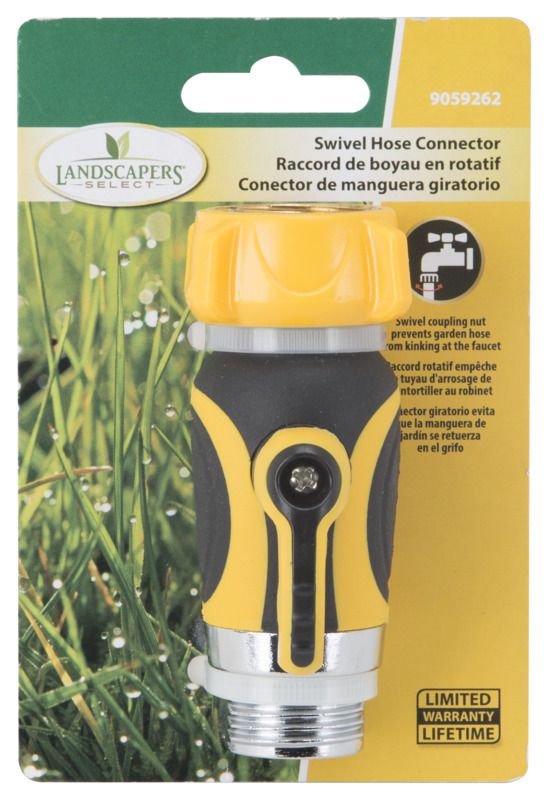 Swivel coupling nut prevents garden hose from kinking at the faucet. Comfort rubberized finish body. Easy to turn large lever.