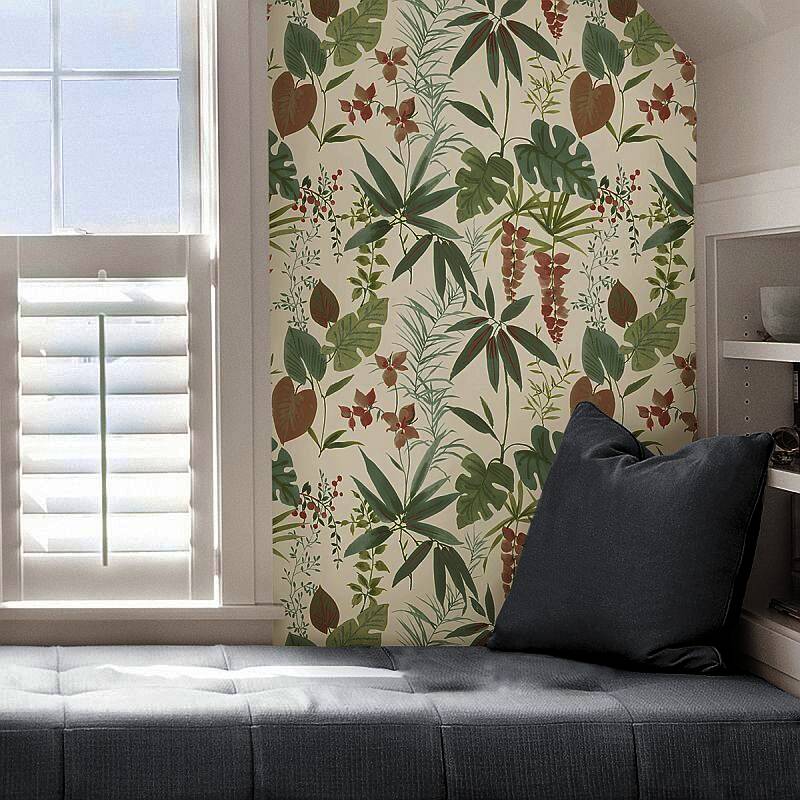 Achieve a soft elegance in your space with this watercolor botanical design. Tropical ferns are bathed in a variety of neutral shades and muted green hues, lending to its bohemian flair. Warm Maldives Peel and Stick Wallpaper comes on one roll that measures 20.5 in wide by 18 ft long.