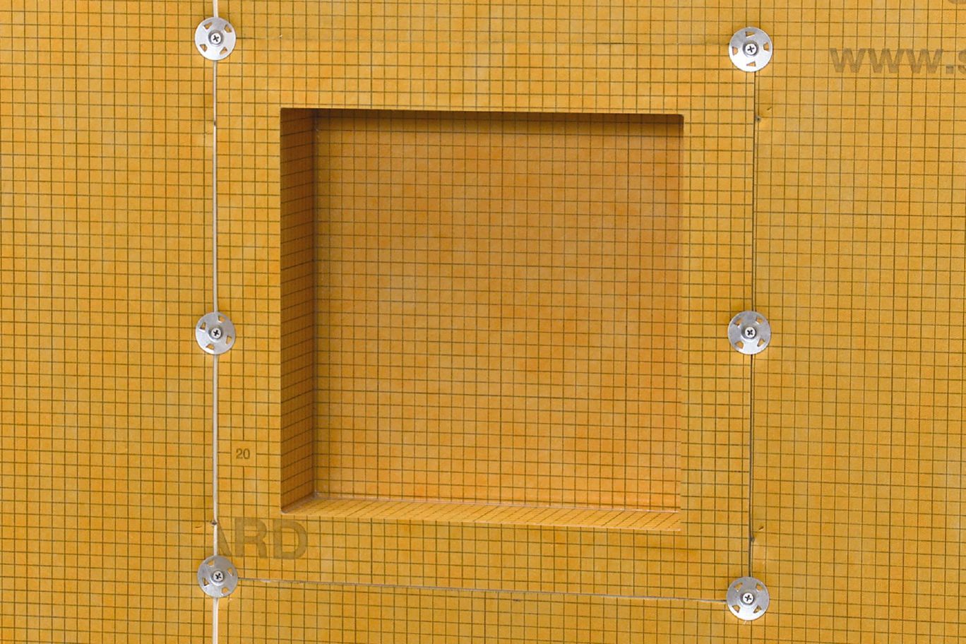 Schluter-KERDI-BOARD-ZT are galvanized steel washers used to fasten KERDI-BOARD to metal or wood stud framing. They feature tabs that penetrate the surface of the KERDI-BOARD and temporarily hold the washers in place to enable quick installation of the corresponding screws..