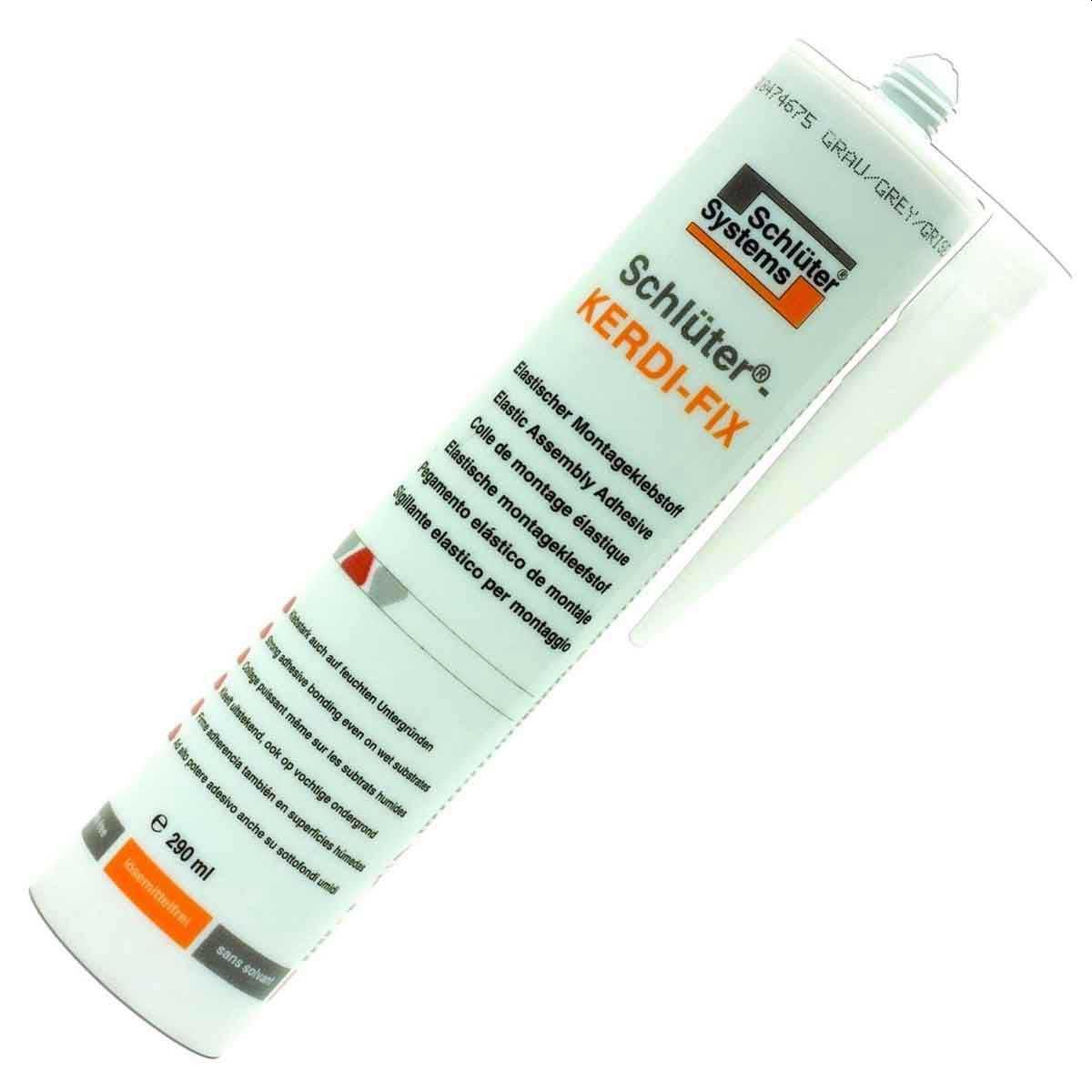 Schluter-KERDI-FIX is a single component, waterproof sealing and bonding compound with a silane-modified polymer base. KERDI-FIX can be used to waterproof pipe and valve protrusions in the Schluter- Shower System in conjunction with the Schluter-KERDI membrane and Schluter- KERDI-BOARD. KERDI-FIX is required to bond the KERDI membrane to the stainless steel Schluter-KERDI-DRAIN bonding flange and can be used to bond KERDI to building elements such as bathtubs, window elements, and door frames. KERDIBOARD can be adhered with KERDI-FIX in various applications, such as countertops, partitions, and other building elements.