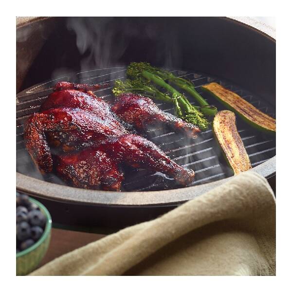 For perfect sear marks on your food, utilize the superior heat conductivity of the cast-iron cooking grid as an alternative to the primary stainless cooking grid. The cast-iron gets very hot and retains the heat, turning it into a perfect searing surface. Flip the grid over for a flat searing surface for fish or seafood.