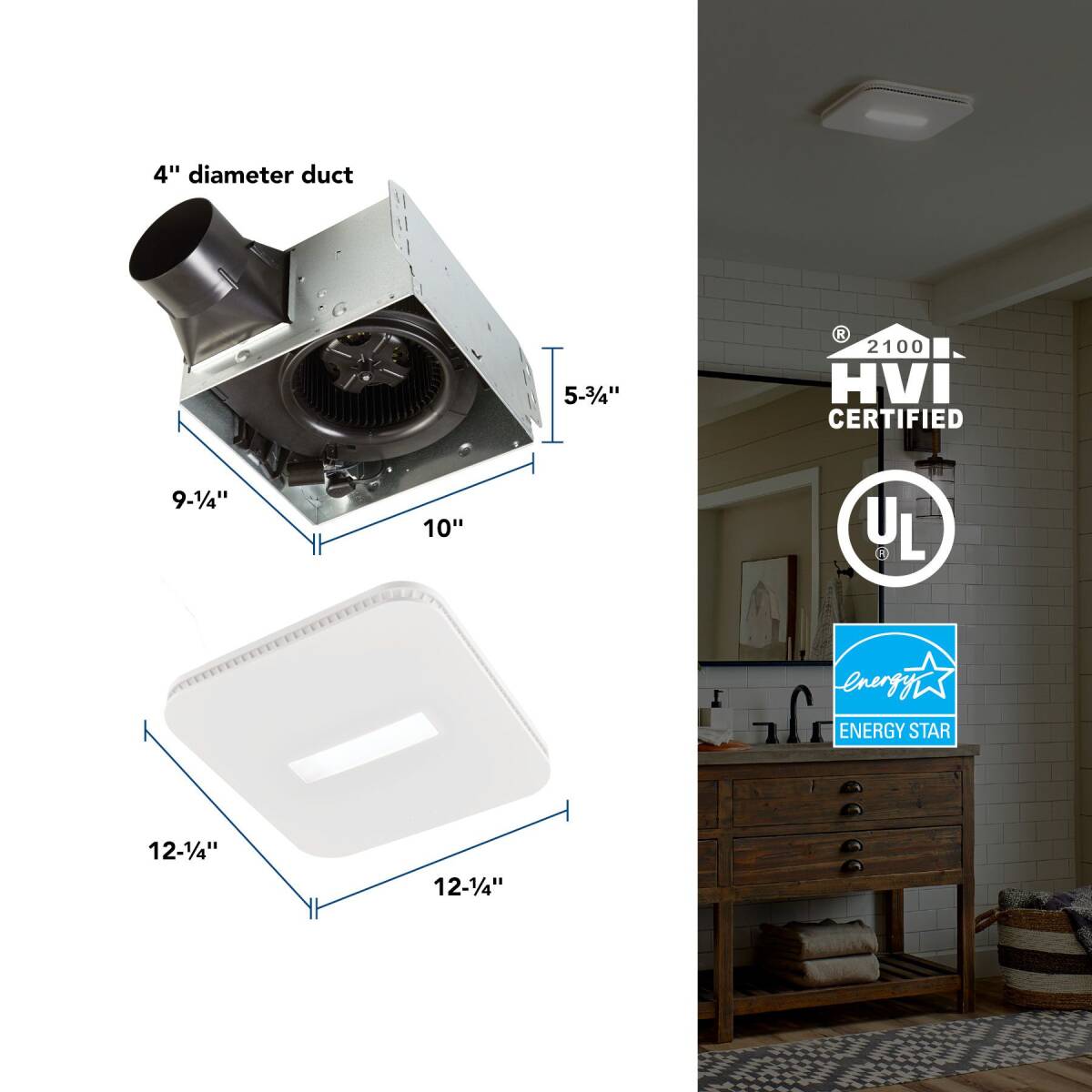 - 110 CFM, Powerful ventilation to remove moisture and reduce the risk of mold or mildew in most full baths