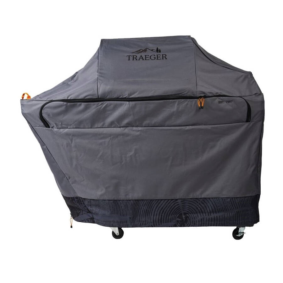 Traeger Full-Length Grill Cover, Nylon/Polyester, Gray, 71 in D, 25 in W, 51 in H, Material Thickness: 1 in, Resists: Abrasion, Flame, UV, Weather, Suitable for: Traeger Timberline XL Wood Pellet Grill