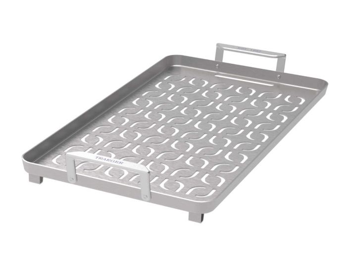 Keep small like shrimp, veggies, meatballs, and more from falling through barbecue grates with the Traeger ModiFIRE fish and veggie hardened steel barbecue tray. It directly sits on the grill grates of Traeger wood pellet barbecues for ease, and controls corrosion with tempered steel construction to permit simple cleaning. ModiFIRE extras can be added or eliminated right away, allowing you rapidly to change the cooking surface on your barbecue without removing the grate. Strong and simple to clean.
