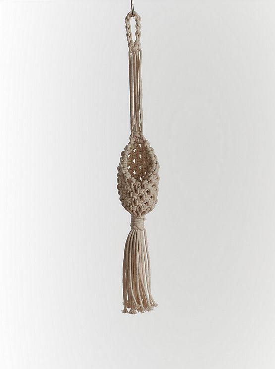 Primitive Planters Large Woven Plant Pouch is an adorable hanger to display your succulents cactus and mini plants. Holds up to a 3 in pot. Made with 100% woven cotton with a loop at the top for easy hanging. Use with Primitive Planters S Hooks or Hanger Hooks for easy hanging. 26 in long x 4 in wide.