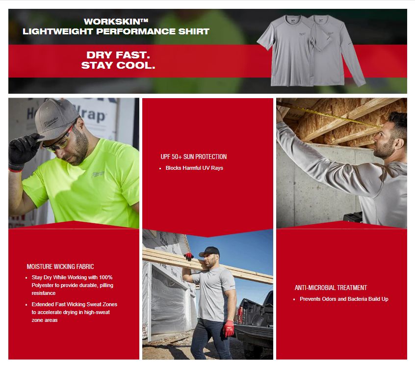 - Moisture wicking fabric - Stay Dry While Working