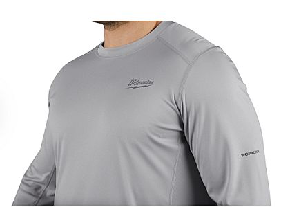 Our WORKSKIN™ Lightweight Performance Long Sleeve Shirt is designed for tradesmen who need their next-to-skin layer to dry fast, keep them cool, and protect them from harmful UV rays. Get a work shirt that matches your level of performance every day with a MILWAUKEE® WORKSKIN™. These high-performance work shirts are made from moisture-wicking fabric that helps you stay dry, while the 100% polyester material dries fast and resists wrinkles, unlike standard cotton base layers. The relaxed fit and raglan sleeves allow you to move freely to accomplish any task for comfortable all day wear.