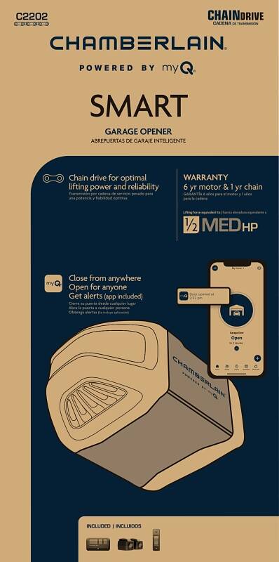 Chain Drive Wi-Fi Garage Door Opener utilizes smartphone control. Control, secure and monitor the garage with the myQ app- anytime, from anywhere. It has next generation garage technology. Improved Wi-Fi® connectivity and enhanced memory to support new myQ features and solutions. The Integrated Bluetooth technology: Reduces setup time and makes it even easier to connect to the myQ app. Security+ 2.0 technology provides unmatched encryption (100 billion codes).