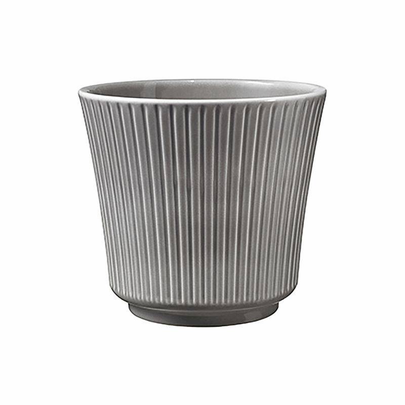 4.7-inch Warm-Gray Delphi Indoor Ceramic Pot. 100-percent waterproof. Made in Germany with 100% rainwater and natural native clay. No drainage holes so no worry about damage to furniture. Just drop in – no need to replant.