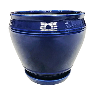 Feature the Collins planter as a centerpiece or eye-catching accent. The traditional style shape of this planter is decorated with a rich and vibrant deep blue glaze that will create both a formal and inviting atmosphere. Made from traditional ceramic, this planter provides superior quality. Featuring an attached saucer to catch excess water and rubber pads on the bottom to protect surfaces, it is an ideal planter for indoor settings.
