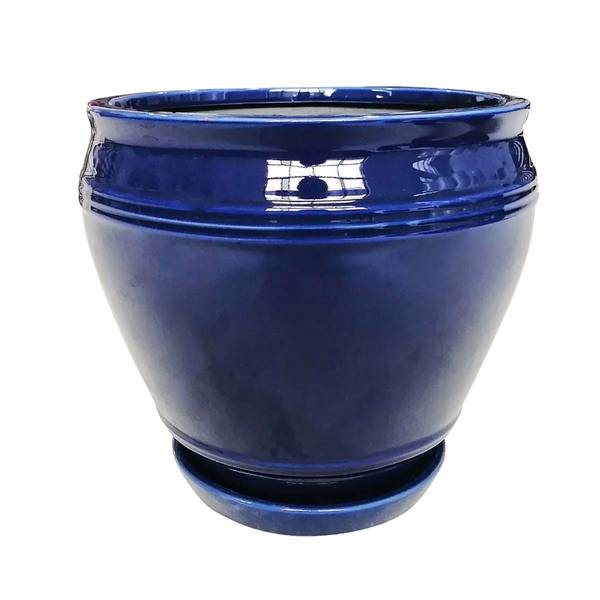 Feature the Collins planter as a centerpiece or eye-catching accent. The traditional style shape of this planter is decorated with a rich and vibrant deep blue glaze that will create both a formal and inviting atmosphere. Made from traditional ceramic, this planter provides excellent quality. Featuring an attached saucer to catch excess water and rubber pads on the bottom to protect surfaces, it is an ideal planter for indoor settings.
