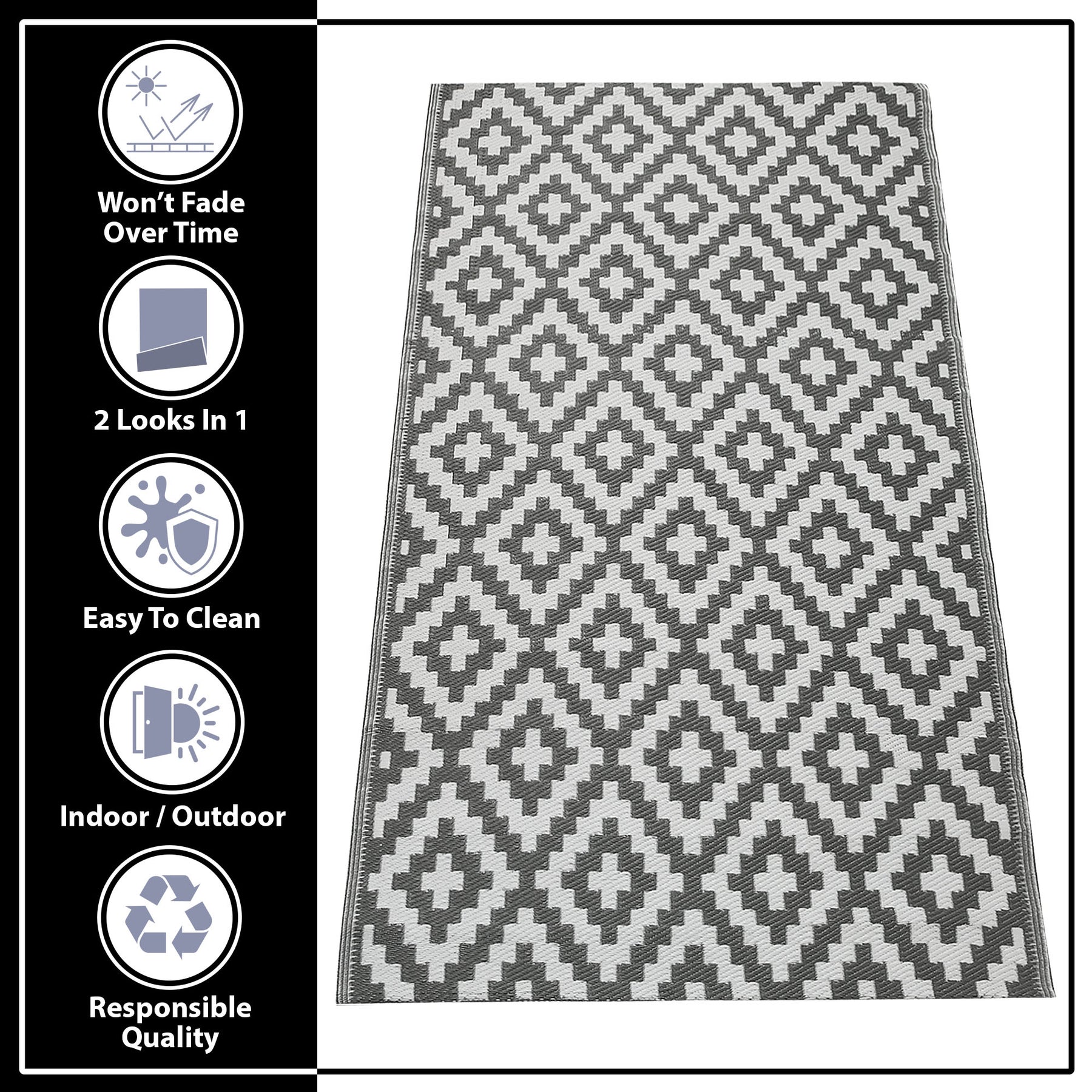 Durable Design - Our plastic rugs have built in UV and stain resistance, ensuring they keep up appearances for the long haul with less fraying, fading, and washing. Durable, yet stylish.