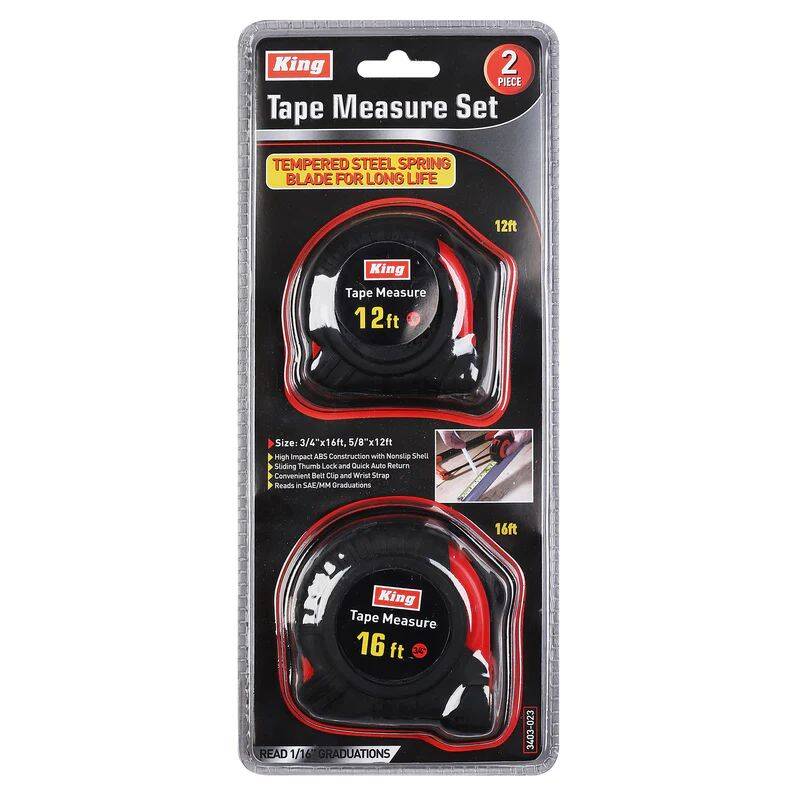 King Tools Tape Measure Set includes 12 Feet Tape Measure (5/8" x 12ft) and 16 Feet Tape Measure (3/4" x 16ft).