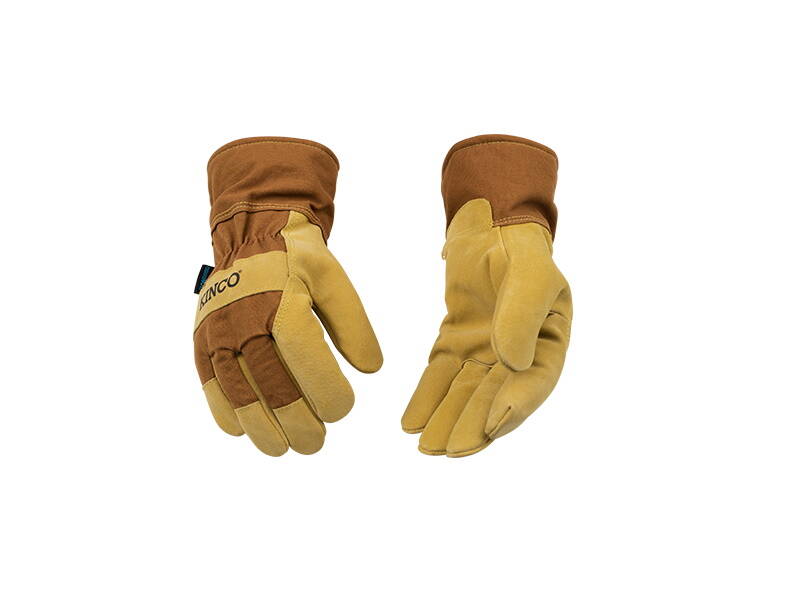 Golden suede pigskin palm protects the hand with exceptional durability, and due to its porous nature, remains soft & flexible after getting wet. Brown water-repellent heavy duck fabric back and cuff protects hand from cold and wet conditions.