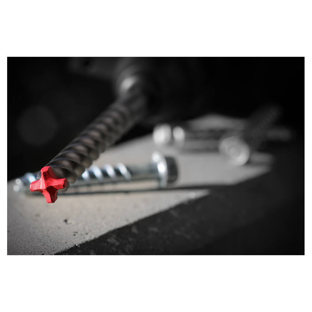 Diablo revolutionary, most complete range of SDS-Plus and SDS-Max Rebar Demon™ four cutter full carbide head hammer drill bits are the only bits designed to be the most durable, fastest and coolest solutions on the market. The Rebar Demon™ bits feature up to 2X more dura carbide to withstand up to 1800° F of intense heat whereas standard bits fail at 800° F. Diablo impact-resistant four cutter full carbide head withstands the stress of high-powered hammer drills and the impact of rebar by taking small bites of rebar to deliver controlled carbide wear, reduced vibration and up to 7X longer life. Produced with tri-metal fusion welding, the full carbide head resists heat and prevents breakage in extreme impact situations. Precision tip delivers the stability and accuracy required to produce fast, precise holes in reinforced concrete for anchor setting.
