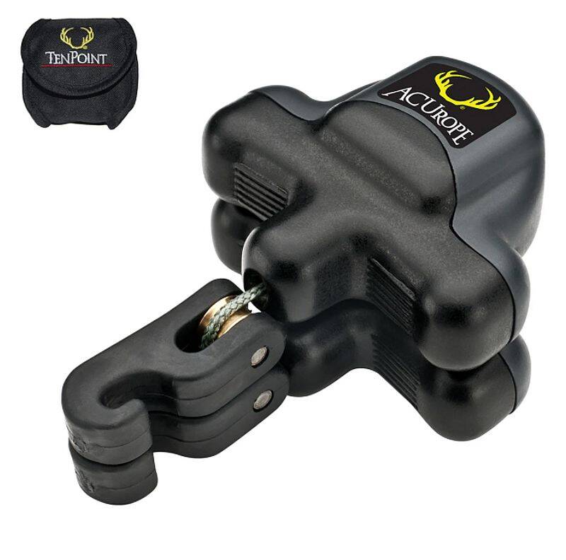 The patent pendingACUrope is a revolutionary portable, retractable crossbow rope-cockerthat cocks a crossbow like traditional rope-cockers on the market today but thats where the comparison ends. When the shooter is finished cocking thebow, the ACUropes draw cord completely retracts inside one of the two grips.Then, the grips dovetail neatly together to form a compact unit that the hunter canconveniently slip inside a belt-mounted holster or pouch. The units slender drawcords, pound-for-pound, 15-times stronger than steel, are made of heat andabrasion resistant SPECTRA® 1000 fiber.