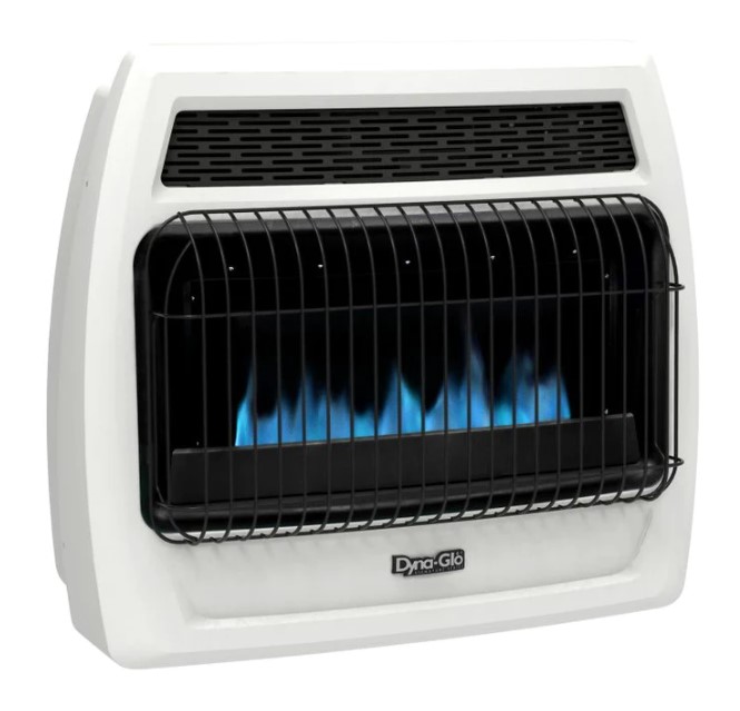 Dyna-Glo wall heaters are the ideal choice for safe, indoor supplemental heating. This state-of-the-art vent free technology does not require a flu or chimney. These heaters are great for use in your home, cabin, or garage. Since these heaters do not require electricity to operate, they make an excellent choice for everyday heating, and emergency situations when the power goes out. Using blue flame heating technology, heat is distributed similar to your central home heating system. This blue flame wall heater burns with 99.9% efficiency and operates on propane only. Not for sale in California or Canada. Check your local regulations on installation restrictions and requirements. Propane use requires 100-lb tank or larger with two-stage adjustable regulator available from local gas company. Operating heater above elevations of 4,500 feet could cause pilot outage.