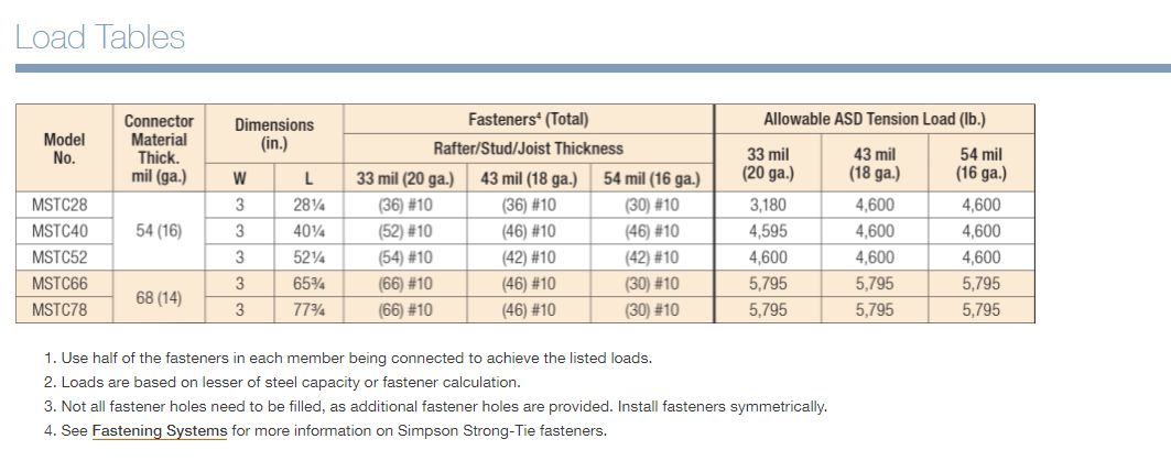 The MSTC is designed to resist tension loads in uplift applications. This medium strap tie utilizes a staggered fastener hole pattern to optimize strength. The MSTC is a load-rated, precut strap designed for quick installation and optimal performance.