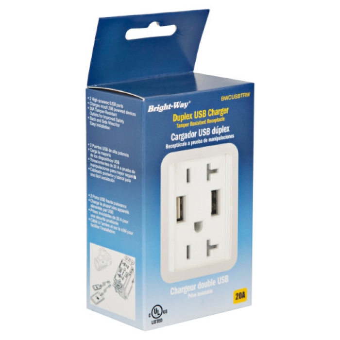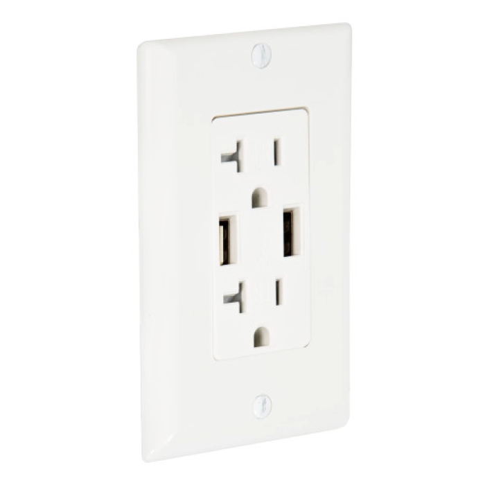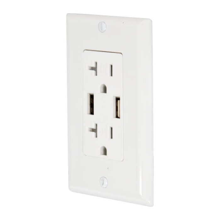 20-Amp White Duplex USB Charger Tamper Resistant Receptacle