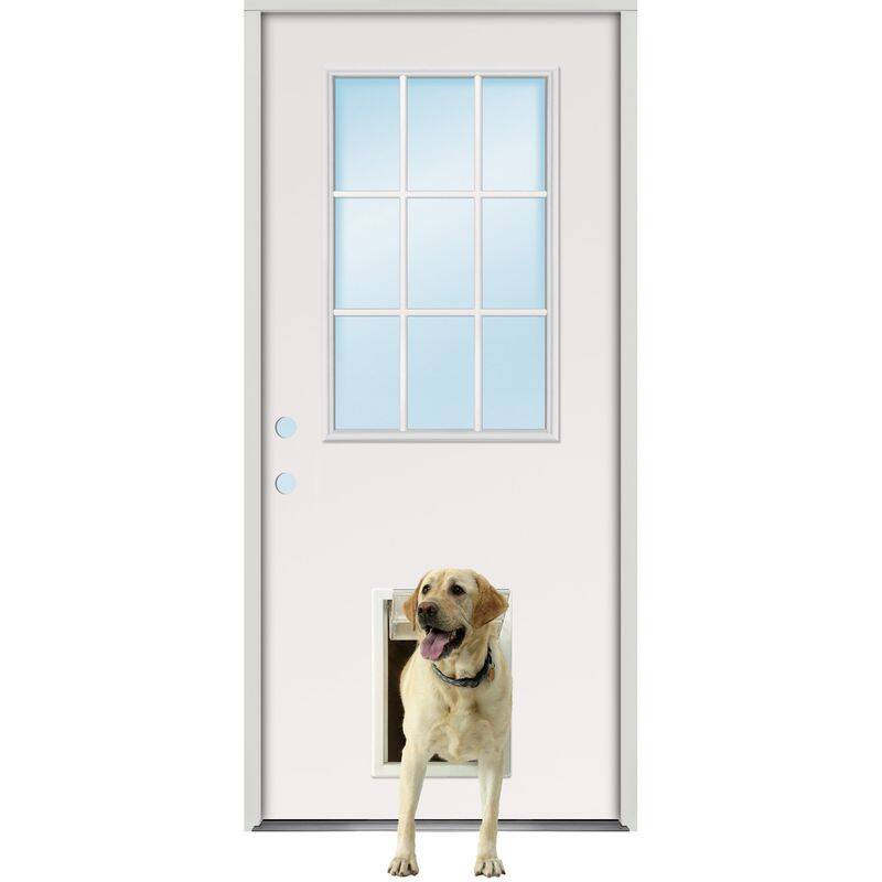 36-Inch X 80-Inch Fiberglass 9 Lite Right Hand Prehung Exterior Door with Pet Door