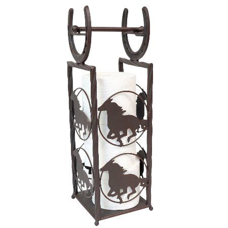 Metal Toilet Paper Holder And Holding Station With Horses And Horseshoes