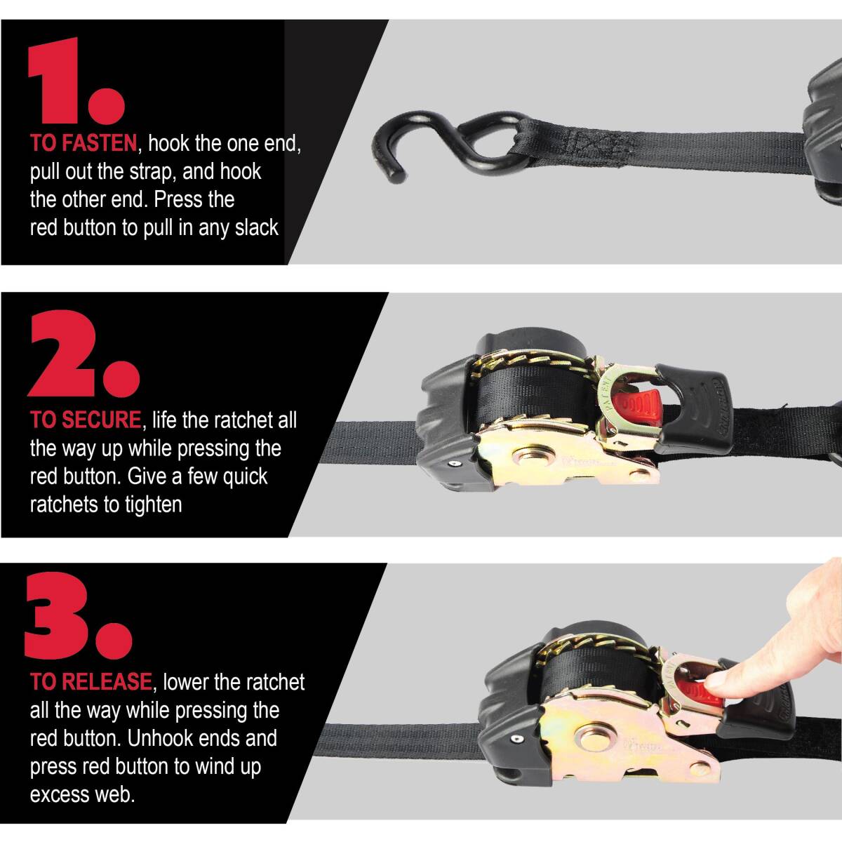 2-Inch x 10-Foot 3300-Pound Re-Tractable Ratchet Straps