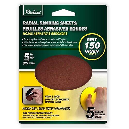 150-Grit, Aluminum Oxide, Round Sanding Sheet, 5-Pack