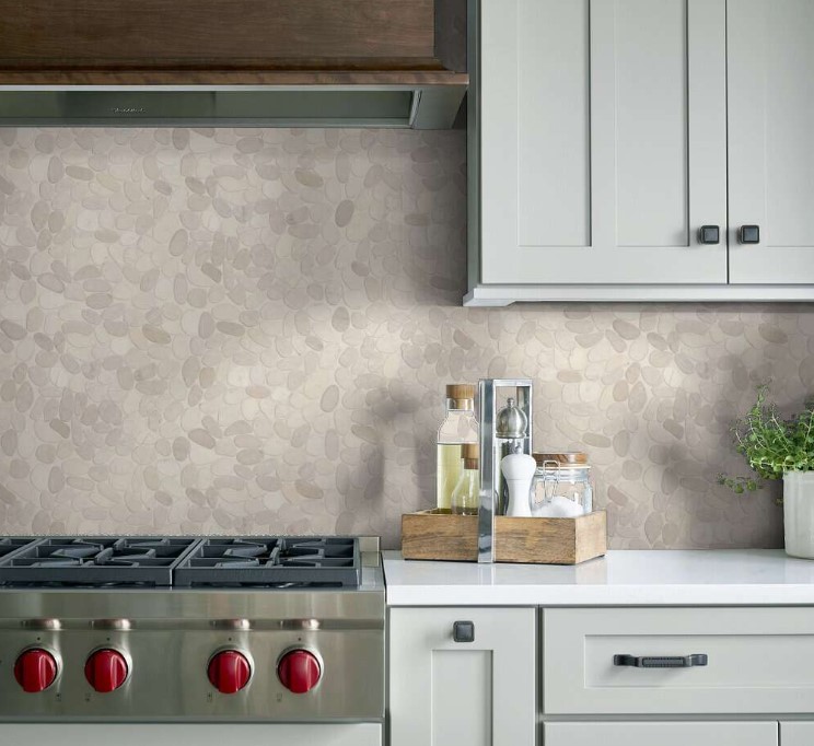 12-Inch x 12-Inch Pebble Flat Mosaic Serenity Ivory