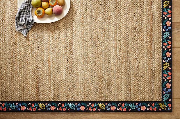 Crafted by artisans in India, the Costa Collection for Rifle Paper Co. x Loloi is braided of 100% jute and features an embroidered border with floral designs that are uniquely Rifle Paper. Co. Costa is also GoodWeave certified, ensuring our commitment to ethical production and the support of weavers' communities.