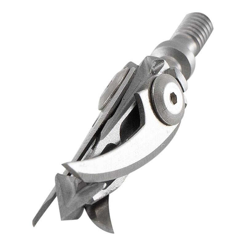 OUR ALL-NEW DESIGN IS THE MOST INNOVATIVE BROADHEAD IN YEARS. B3s Exoskeletal Broadheads are stronger, straighter and superior a patent-pending design built by archers and hunters, like you. The curved blades cut faster and penetrate longer. A combination of blades lying flat and a friction grommet under the blades eliminates external bands, and produces a quiet flight and field-tip accuracy. The pre-loaded blade angle is quick to deploy, and the head design features built-in stops for both closed and open positions, preventing arrow damage.