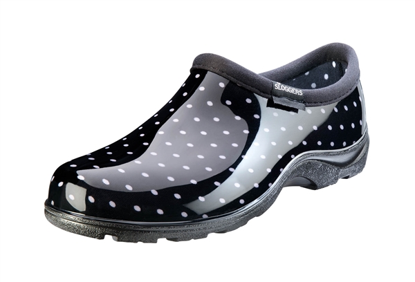 Black / White Polka Dot Women's Rain And Garden Shoe, 7