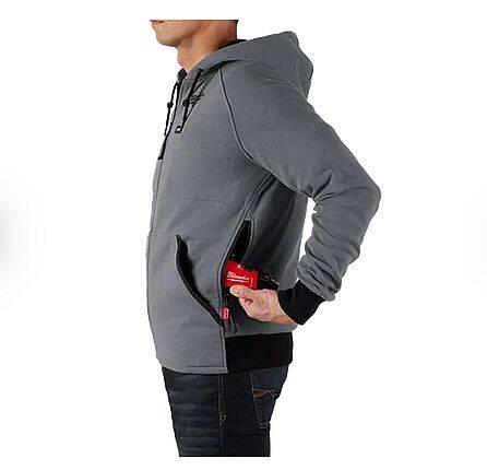 Powered by our M12™ REDLITHIUM™ Battery Technology, the MILWAUKEE® M12™ Heated Hoodie provides HEAT BUILT FOR COMPLETE COMFORT. Using a one-touch LED controller, the advanced carbon fiber heating elements create and distribute heat to the chest and back. Our Quick-Heat function allows our users to select from three heat settings and feel heat 3X faster than market competitors. A hidden battery pass-thru pocket construction allows for front or back battery placement, increasing comfort and flexibility depending on the situation. Combining a durable cotton/polyester fleece and comfortable jersey lining, this hoodie provides a versatile three-season solution to keep heat in and not add bulk.