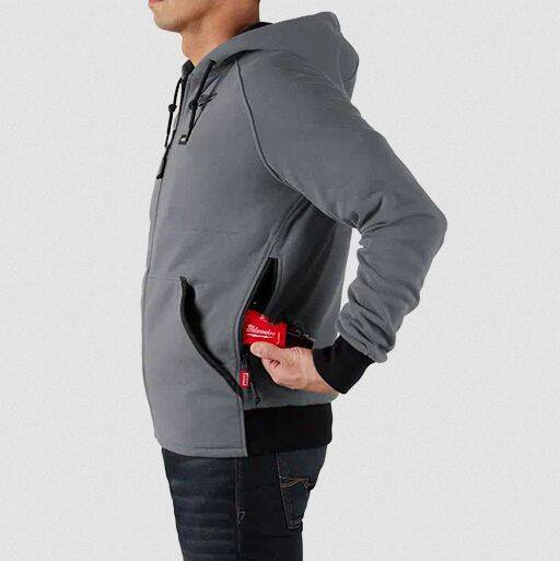 Powered by our M12™ REDLITHIUM™ Battery Technology, the MILWAUKEE® M12™ Heated Hoodie provides HEAT BUILT FOR COMPLETE COMFORT. Using a one-touch LED controller, the advanced carbon fiber heating elements create and distribute heat to the chest and back. Our Quick-Heat function allows our users to select from three heat settings and feel heat 3X faster than market competitors. A hidden battery pass-thru pocket construction allows for front or back battery placement, increasing comfort and flexibility depending on the situation. Combining a durable cotton/polyester fleece and comfortable jersey lining, this hoodie provides a versatile three-season solution to keep heat in and not add bulk.
