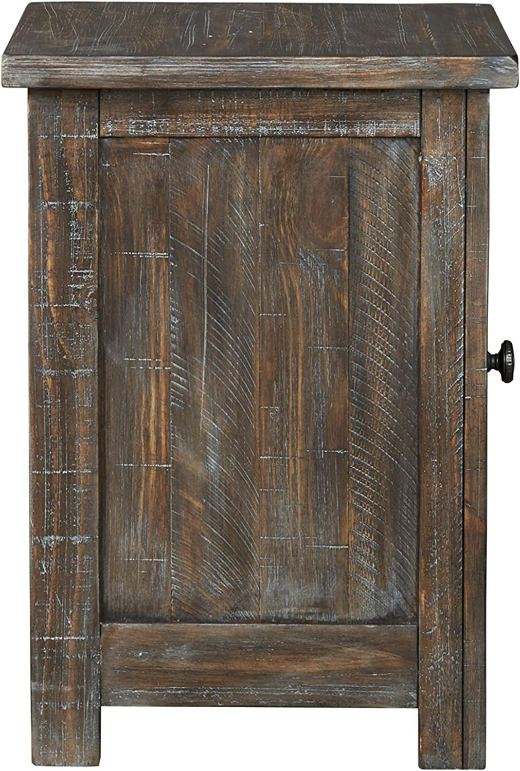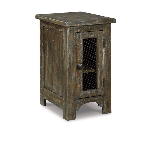 The Danell Ridge chairside end table is so much better for the wear. Its clean, straightforward profile is enriched with solid pine wood treated to a complex finish melding gray and brown hues. Cabinet door with wire mesh front infuses a farmhouse fresh element that’s right on trend. Talk about loaded with charm and packed with possibilities.