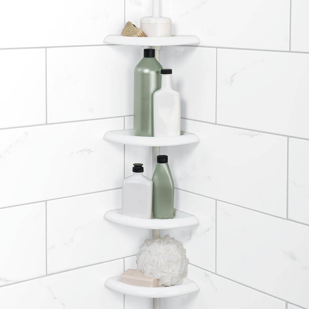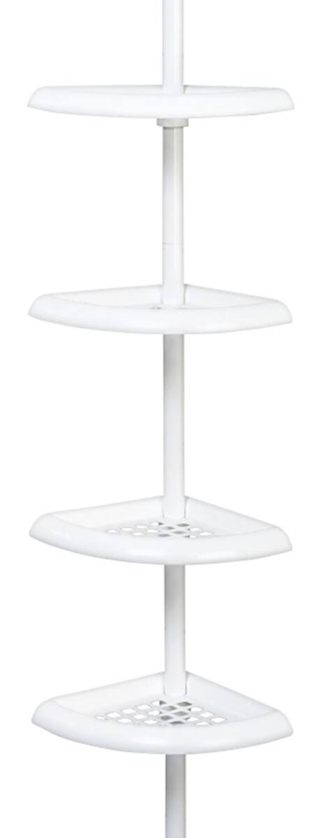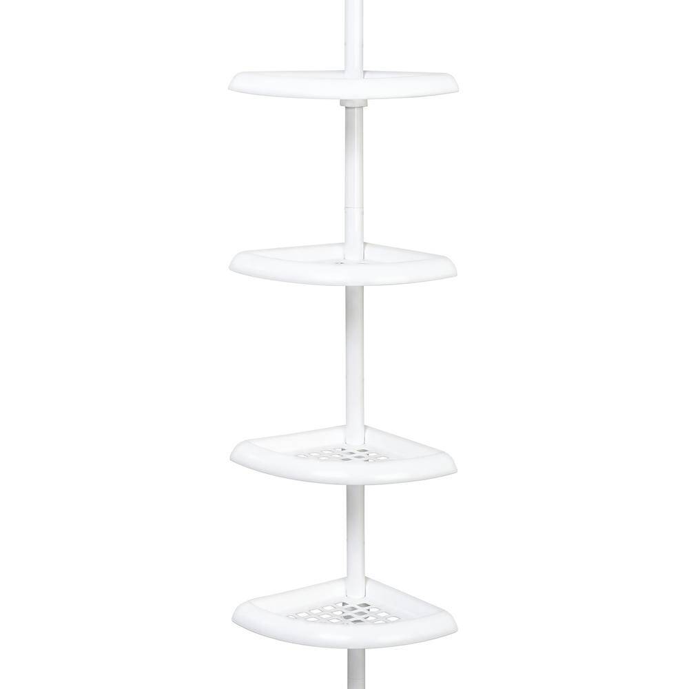 Maximize storage in your bathroom with this 97 in shower caddy, featuring 4 plastic white shelves measuring 10.6 X 7.2 in each.