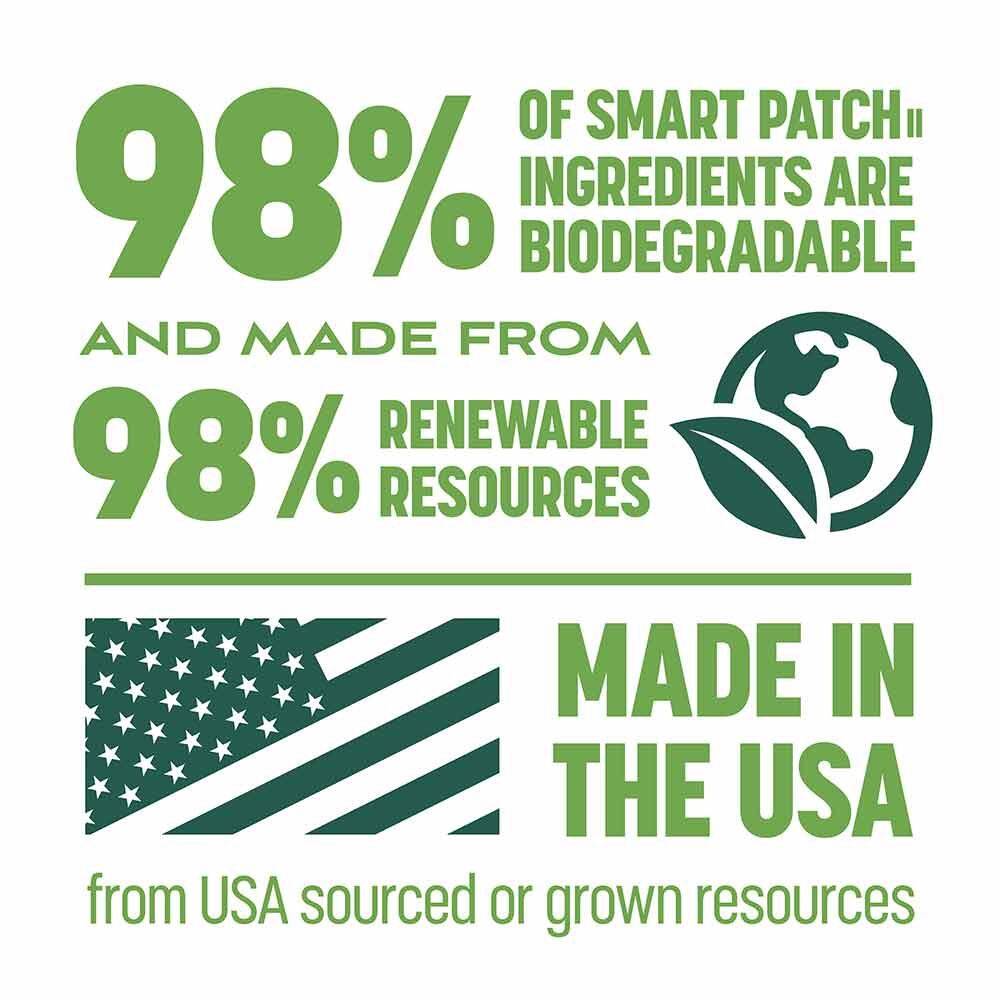 - 98% of Smart Patch ingredients are biodegradable and made from 98% renewable resources.