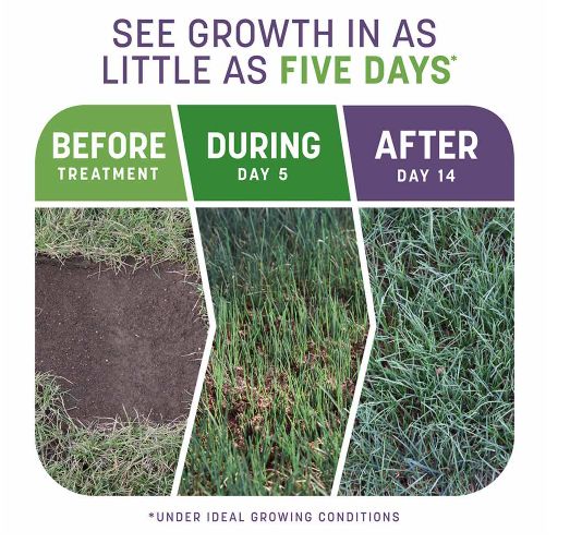 Our Smart Patch seeding mixture is drought tolerant and contains just the right amount of fertilizer to help your lawn succeed, along with mulch that turns a lighter color when dry - notifying you that its time to water again. Plant this grass seed mix in the early spring or early fall and begin to see growth in as little as 5 days and full results as soon as 14 days. For optimum coverage, use 1 lb per 4 square feet. For extended coverage use 1 lb per 20 square feet.