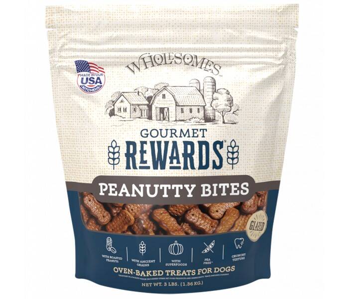3-Pound Bag Wholesomes Gourmet Rewards Peanutty Bites Dog Biscuits