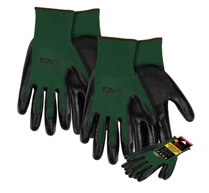 Large Dark Green 13-Gauge Polyester Knit Shell With Black Nitrile Palm Work Gloves 2-Pack